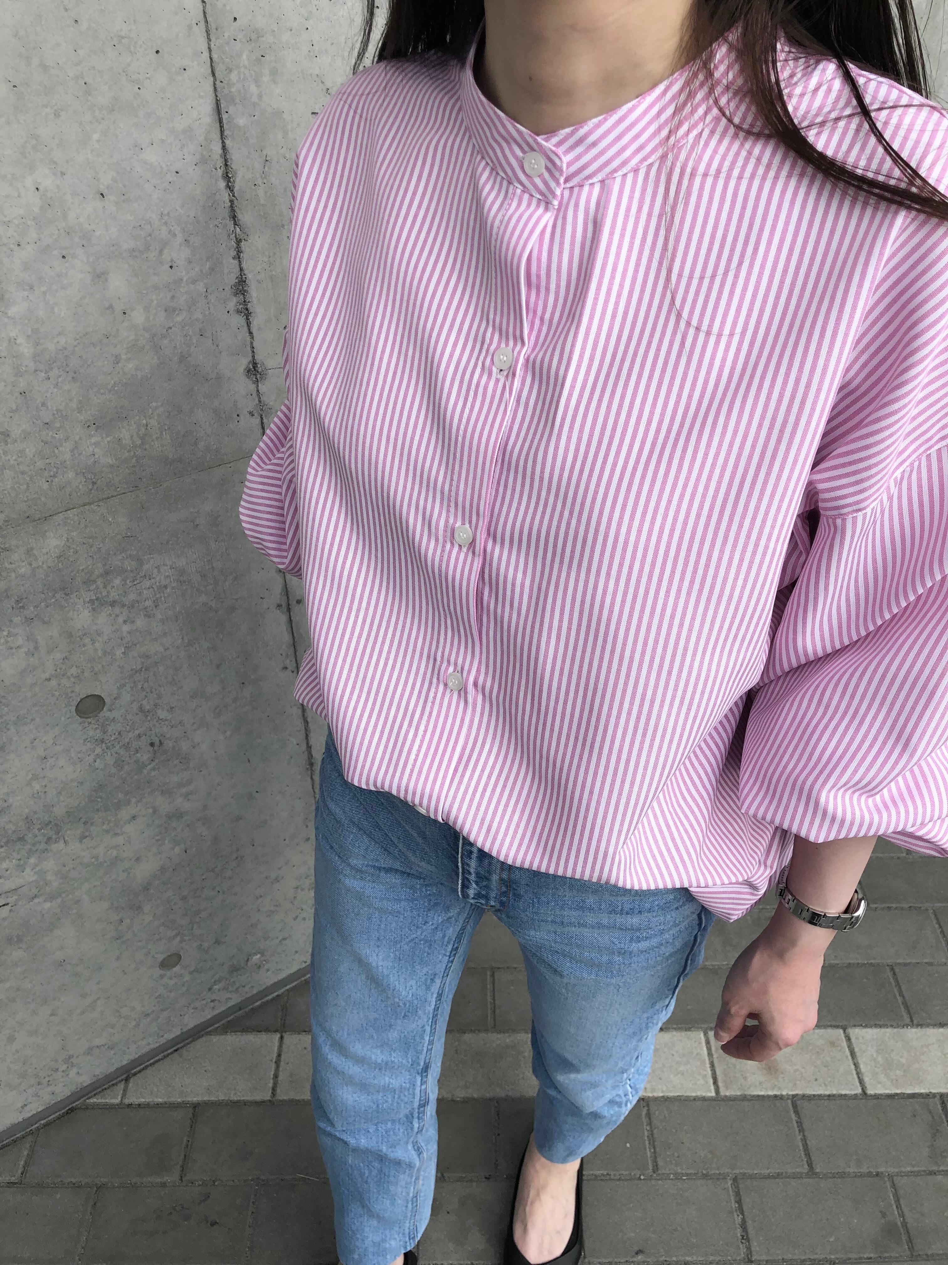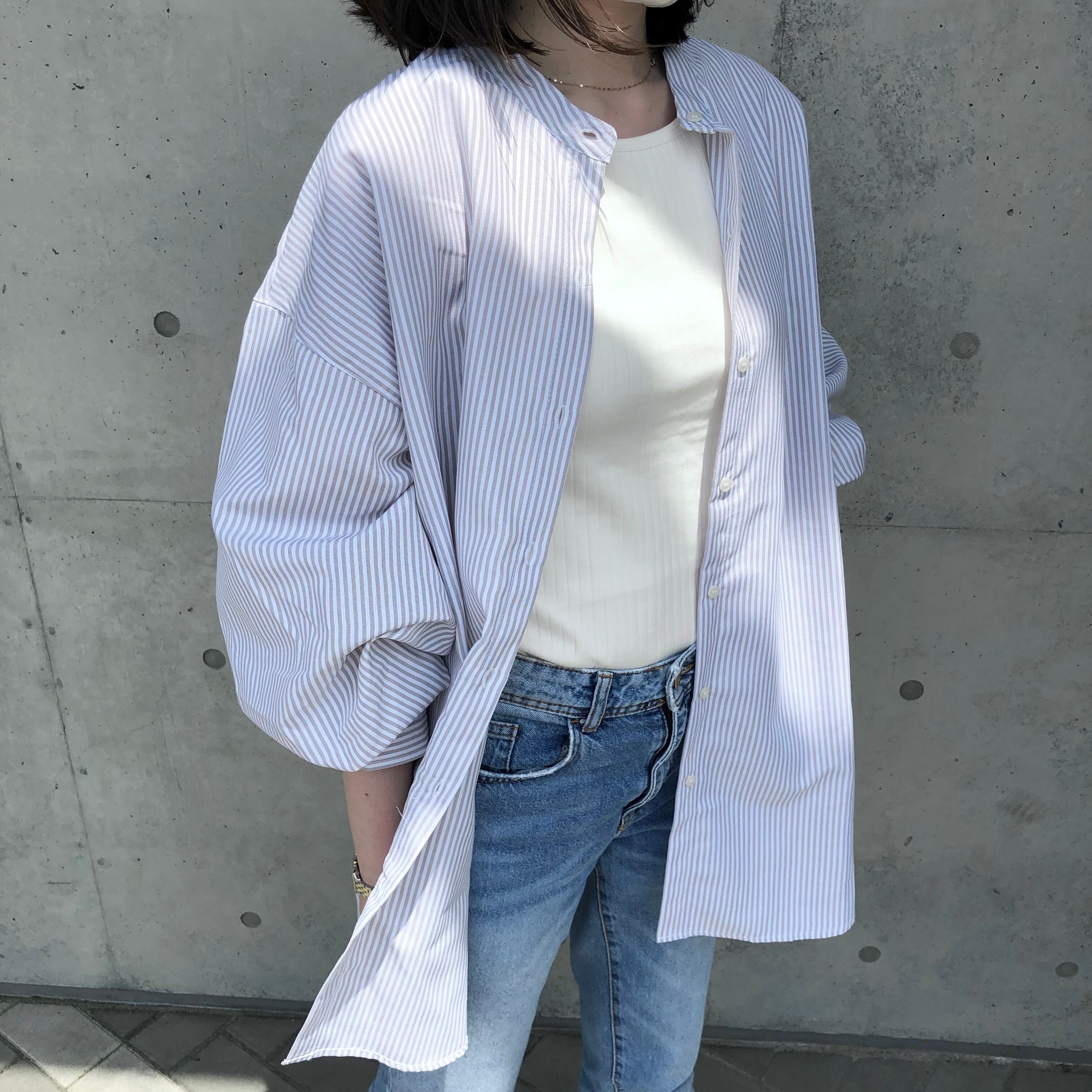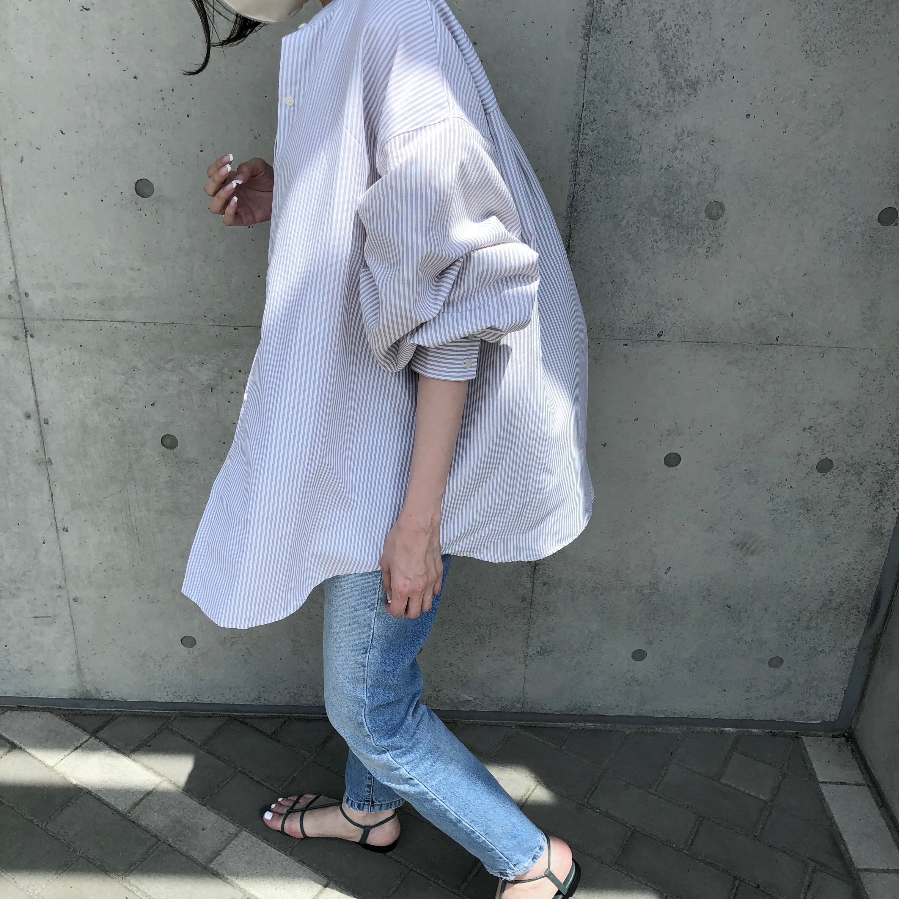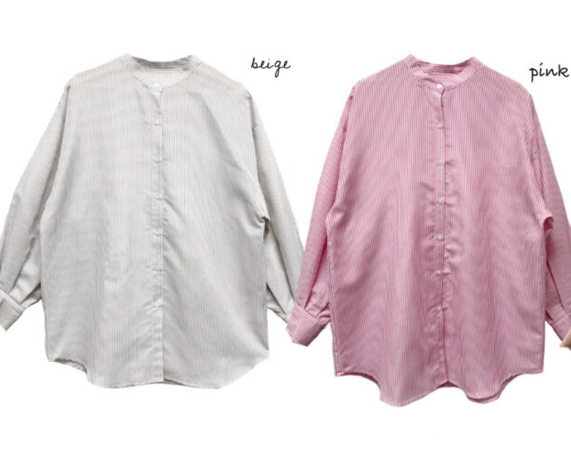 シンプルなバンドカラーシャツに、今年らしいストライプ柄が登場。