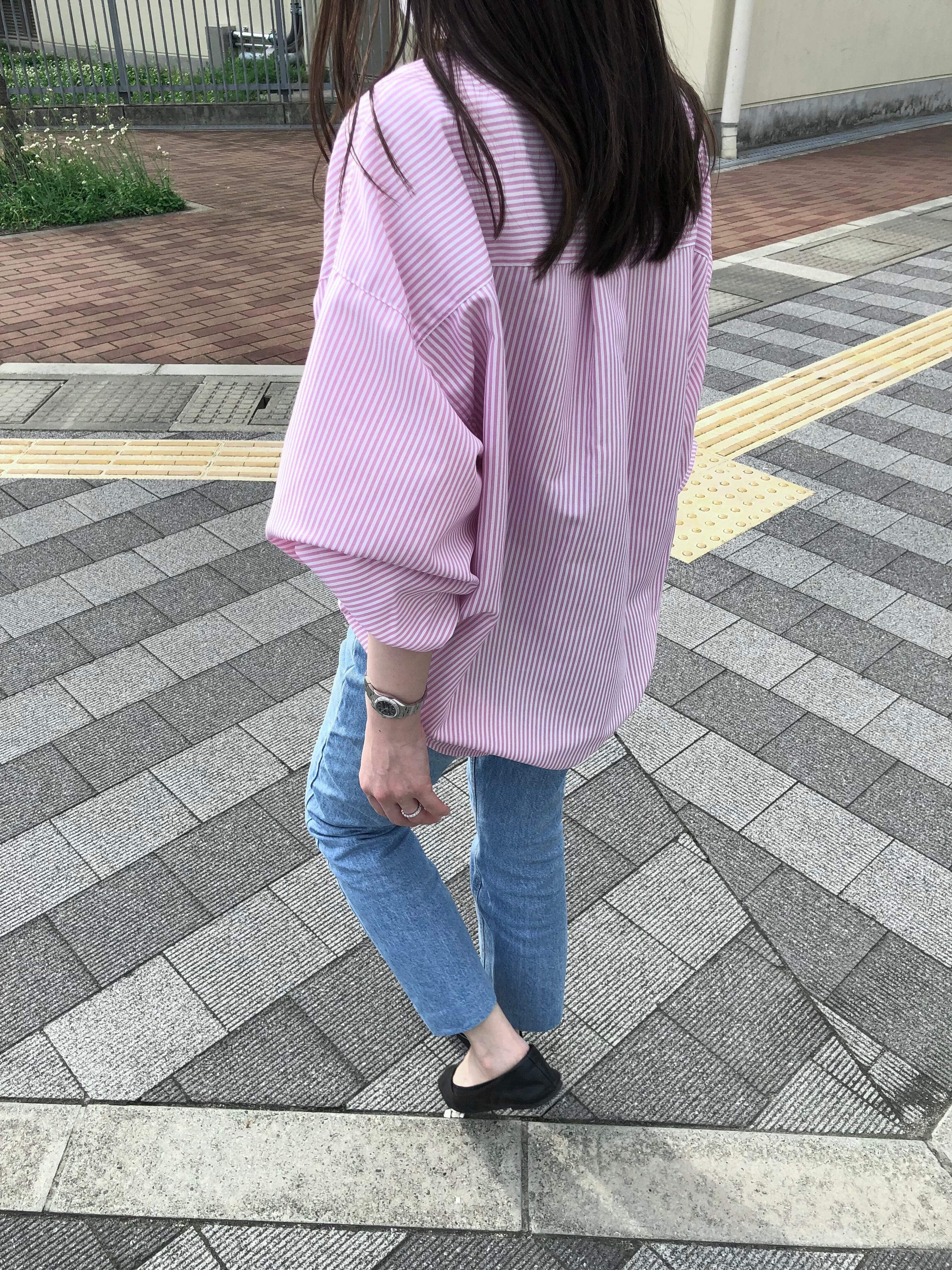 ニットやスウェットとのレイヤードにも使いやすいシンプルなシャツですが、